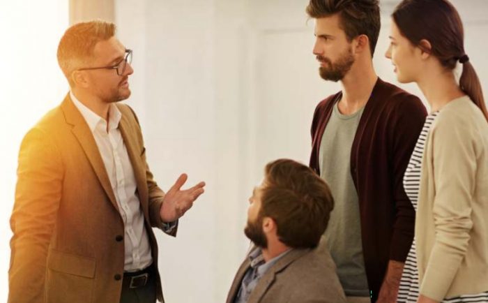 homem convencendo liderança